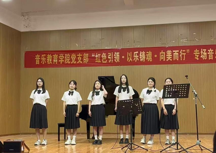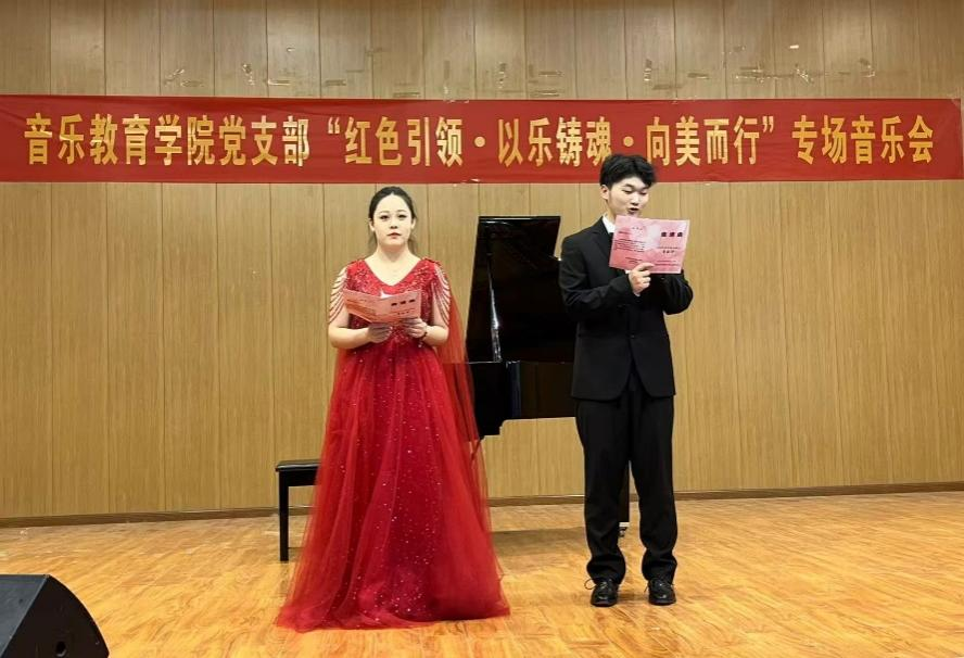 6月4日晚,由音乐教育学院党支部主办的“红色引领·以乐铸魂·向美而行”专场音乐会在音乐教育学院实训中心音乐厅隆重举行。本次音乐会由音乐教研室音乐表演专业倾力承办,以一场融汇中西、贯通古今的艺术盛宴,深情诠释了音乐艺术在培根铸魂、立德树人中的独特力量。