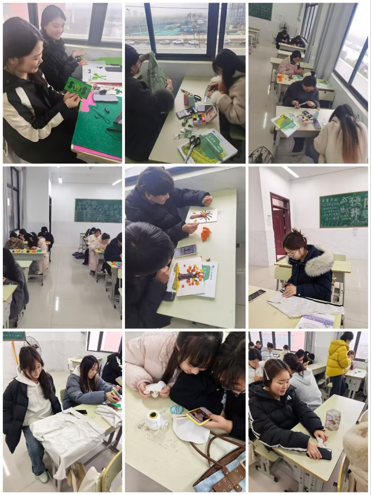 在废旧布料再利用环节,同学们将家中闲置的旧衣物、碎布片、毛线等材料带到课堂。大家化身“小小设计师”,或缝制布偶、手指玩偶,或制作布书、拼贴画,一件件作品形态各异、充满童趣。“学前教育专业的同学将来要走向幼儿园一线,亲手制作教具不仅能锻炼手工技能,更能理解幼儿的认知特点和兴趣点。”指导教师现场讲解教具设计的教育意义,引导同学们在创作中思考如何将教具融入幼儿教学活动。同学们在一针一线中体会耐心与细致,在反复调整中感悟精益求精的工匠精神,更在变废为宝中增强环保意识。
